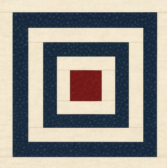 The Log Cabin is one of quilting’s most iconic and versatile patterns. Its simple construction with fabric strips creates a stunning visual effect, making it ideal for both beginners and experienced quilters. Furthermore, the Log Cabin carries deep symbolism: the central square represents the fireplace, and the surrounding strips, called “logs,” can be arranged to create different patterns, such as “Straight Furrow” or “Barn Raising.”